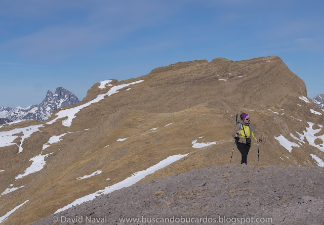 Llegando al Pilón de Acumuer. Balcón de Pilatos y cordal de Peña Puerto Rico al fondo
